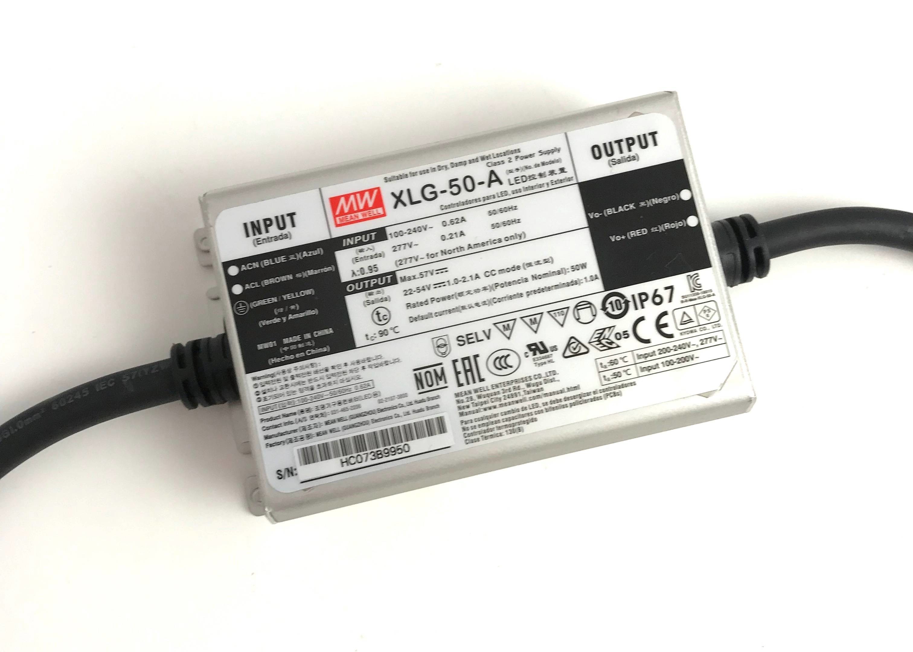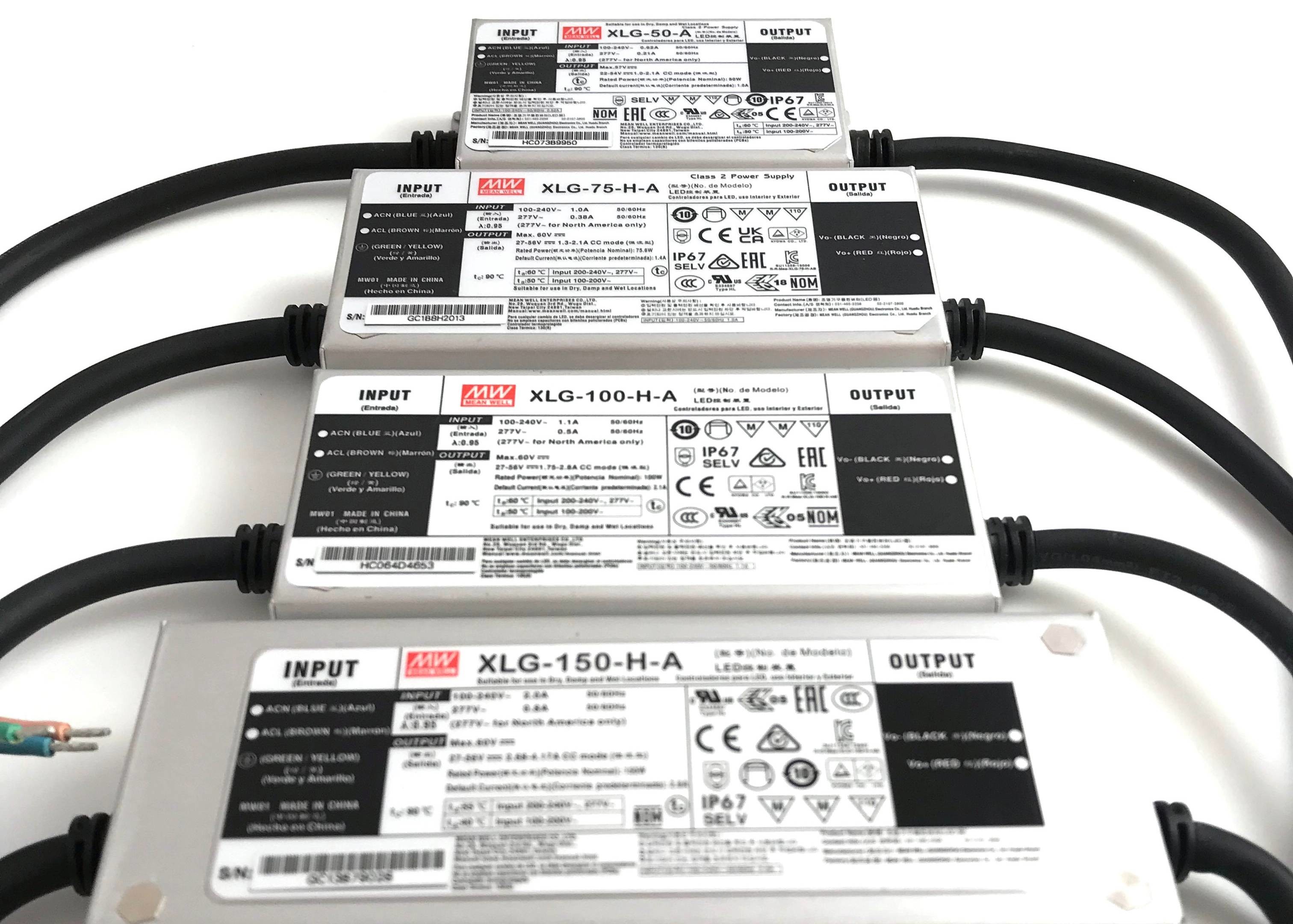 주식 Meanwell 야외 Ip67 XLG 시리즈 50W 75W 100W 150W 200W 240W 일정한 전력 거리 라이트 LED 드라이버