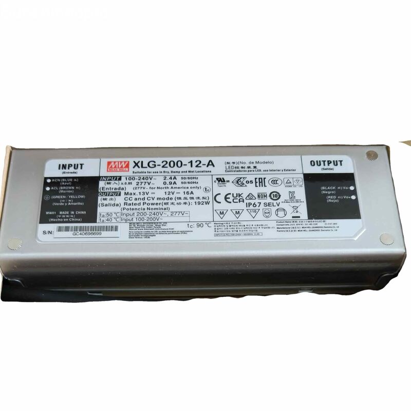 XLG-200 시리즈는 정전력 모드를 특징으로 하는 200W LED AC/DC 드라이버입니다. XLG-200은 100~305VAC에서 작동하며 700mA에서 16A 사이의 다양한 정격 전류 모델을 제공합니다. 최대 94%의 높은 효율성과 팬리스 설계를 통해 전체 시리즈는 자유 공기 대류에서 -40°C ~ +90°C의 케이스 온도에서 작동할 수 있습니다. 금속 하우징 설계와 IP67 등급의 방수 기능으로 실내 및 실외 응용 분야에 모두 적합합니다. 또한 혁신적인 환경 적응 기능으로 이 시리즈는 전 세계 거의 모든 곳에 LED 조명기구를 설치할 수 있는 모든 종류의 응용 환경에서 LED를 안정적으로 점등할 수 있습니다. XLG-200 시리즈는 IEC61347/GB/T19510.1 및 UL8750 최신 버전의 국제 안전 규정을 준수합니다. 출력 및 디밍 회로도 새로운 규정을 완전히 준수하며 절연되어 설치 중 사용자와 조명기구 시스템의 안전을 보장합니다.XLG-200매개변수XLG-200-12-